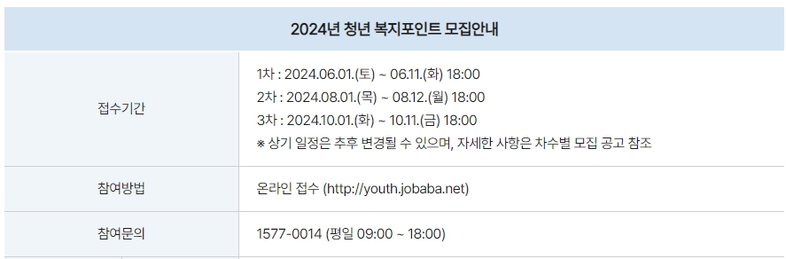 올해는 총 3만 6,000명을 대상으로 하며, 6월 1차 모집에 1만 3,000명, 8월 2차 모집에 1만 3,000명, 10월 3차 모집에 1만 명을 각각 모집할 예정입니다. 대상자로 선정되면 분기별 30만 원씩, 연간 120만 원 상당의 복지포인트를 받게 됩니다.