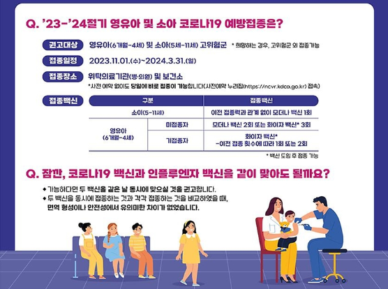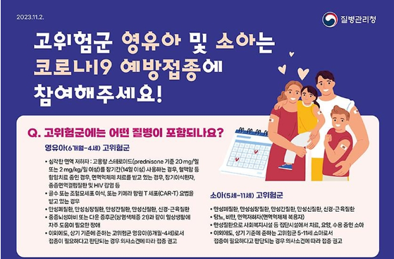 고위험군 영유아 및 소아를 위한 '23-'24 절기 코로나19 예방접종 정보