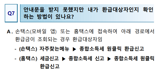 납세자는 홈택스 및 손택스에서 본인이 환급 대상자인지 쉽게 확인할 수 있습니다.