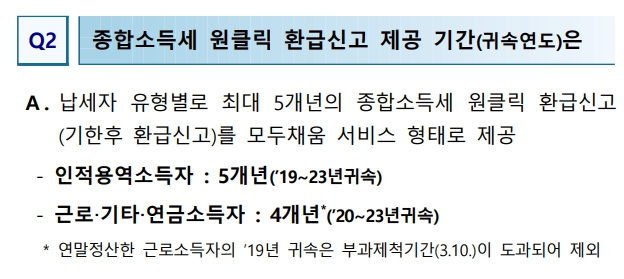 단, 근로소득자의 경우 2019년 귀속분은 부과제척기간(3년)이 지나 환급 대상에서 제외됩니다.