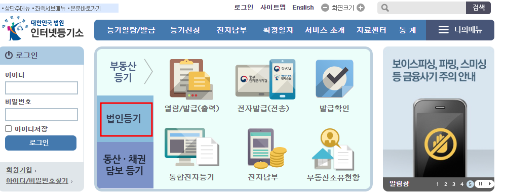 일반 사람들이 등기부 등본을 볼일은 많이 없지만 법인에서는 금융기관이나 기타 기관에서 법인 등기부 등본을 요구하는 일이 빈번하게 생깁니다. 이때마다 등기소에 가서 발급 받지 않고 인터넷 등기소에서 인터넷으로 쉽게 발급 받을 수 있습니다.