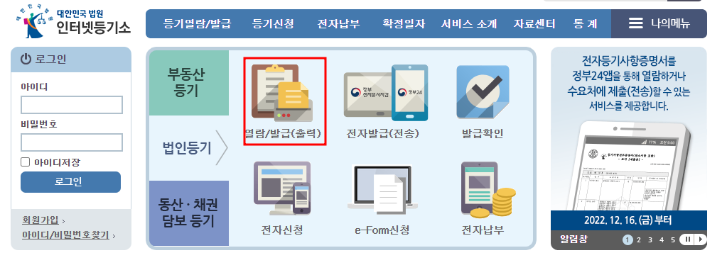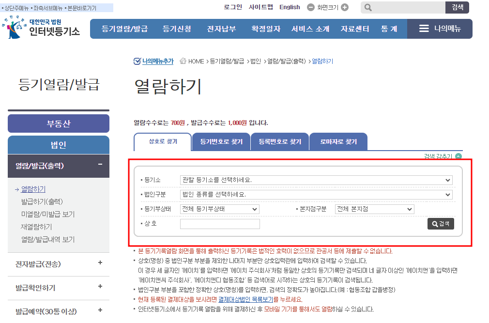 법인 등기부 등본 인터넷 발급 방법