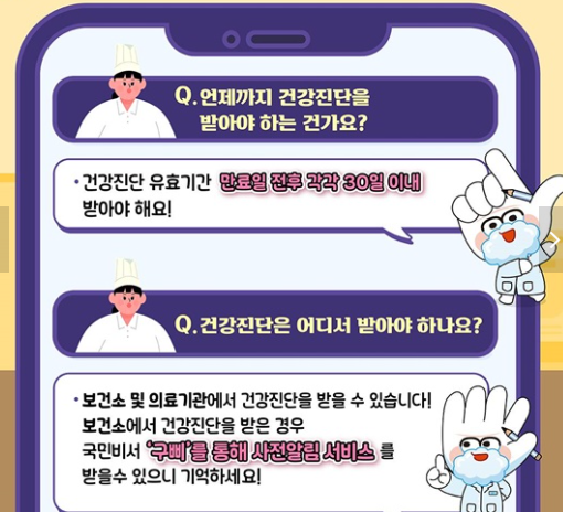 - 자신의 건강진단 유효기간을 반드시 확인하세요.