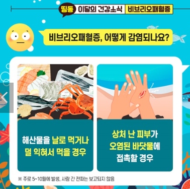 비브리오패혈증은 주로 5월부터 10월 사이에 발생하며, 사람 간 전파는 보고된 바 없습니다.