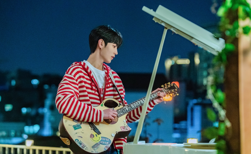 그래서 음악을 떠나 대학 캠퍼스에서 조용히 살아보려던 찰나, 음악에 진심인 대학생 ‘봄’(박지후 분)을 만나게 돼요.