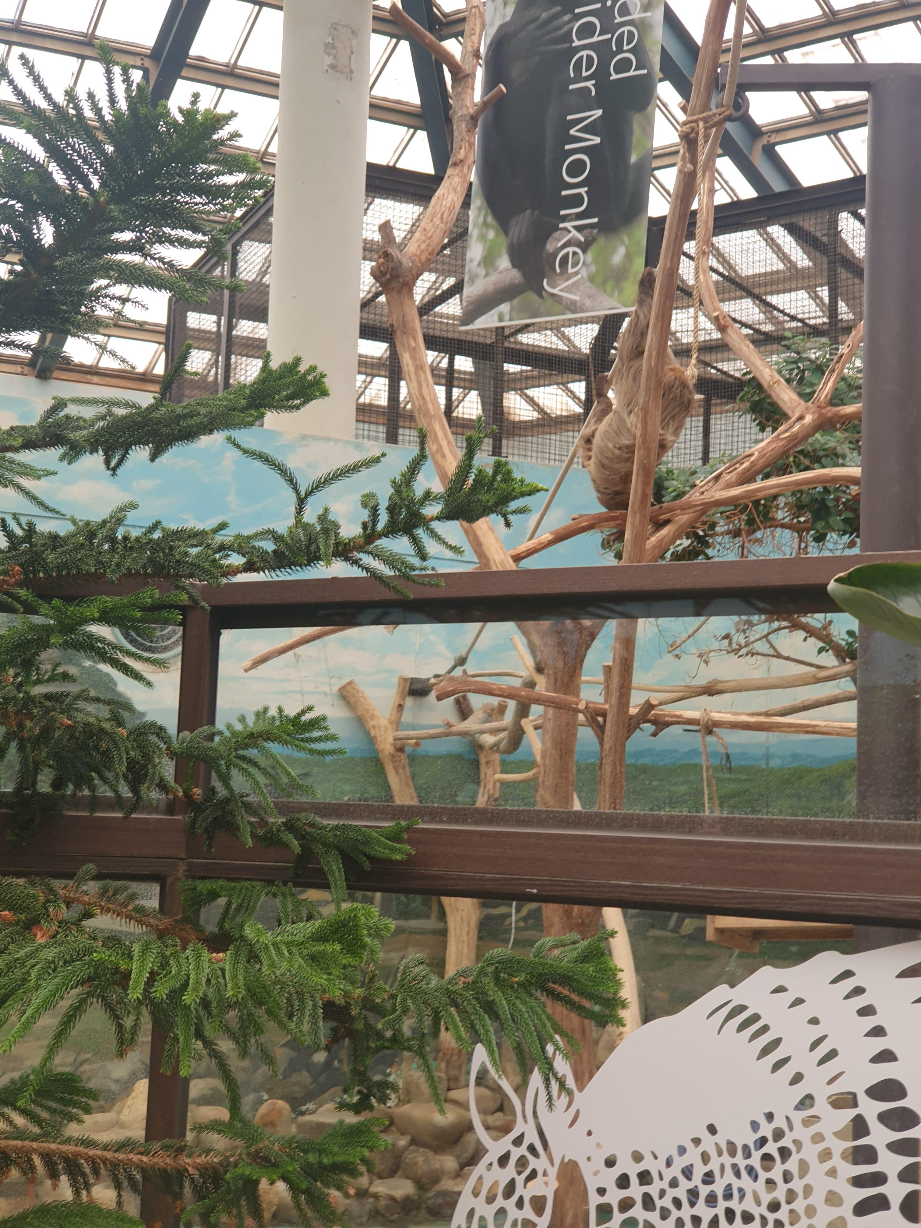처음 이 나무에 매달려있던 나무 늘보가 사라져 한참을 찾았는데 중앙에 있는 탑처럼 생긴 공간에 연결되어 있는 줄에 매달려 있는 것이 아닌가.. 너무나 놀라고 떨어지면 어쩌지? 하는 생각이 들었지만 나무늘보는 익숙한 듯 그 줄을 따라 여기저기를 매달려 왔다 갔다 했다.