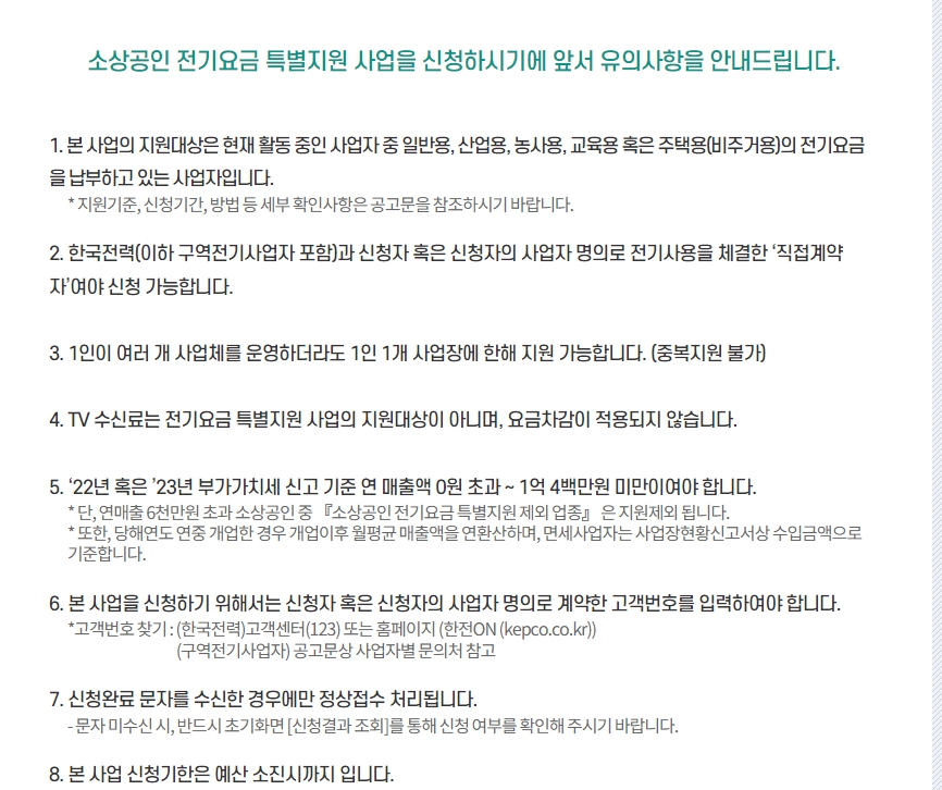 소상공인 전기요금 특별지원 소개, 신청하기, 신청결과 확인 등