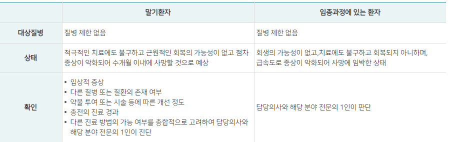 환자의 삶의 마지막 한 부분을 스스로 결정할수 있는 권리를 부여하고 환자의 가족들이 환자의 마지막을 결정한다는 부담감을 완화시킬수 있는 제도 입니다.