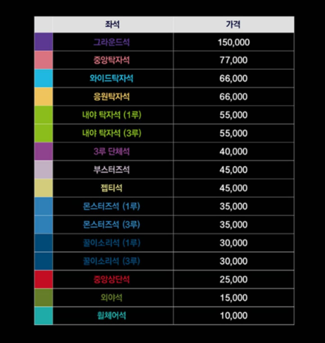 - 와이드탁자석·응원탁자석: 6만 6000원