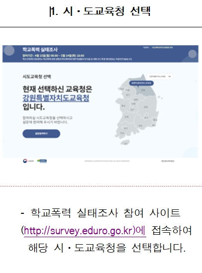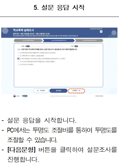 4. 조사 참여 : 학교폭력 실태조사 홈페이지( https://survey.eduro.go.kr/nxui/index.html)