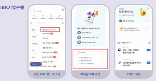 - IBK기업은행 앱 → 생활편의 메뉴 → 혜택 알리미