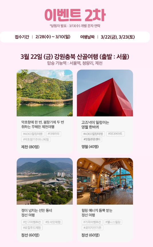 신청 방법: 여행가는 달 누리집 ‘여기로 이벤트’ 페이지