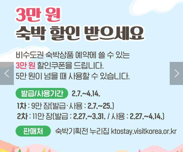 비수도권 숙박상품 예약에 쓸 수 있는 3만 원 할인쿠폰 제공