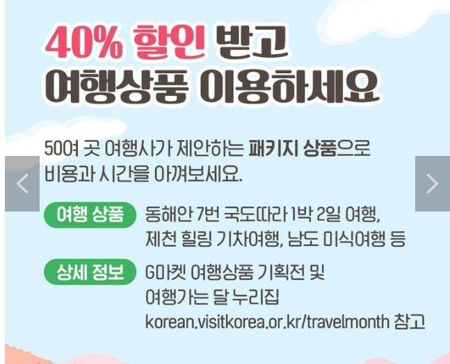 상세 정보: G마켓 여행상품 기획전 및 여행가는 달 누리집