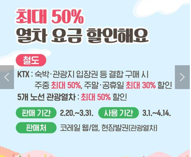 3월, 봄 나들이를 위한 특별 혜택 공유드립니다! 3월은 여행을 떠나기에 가장 좋은 때입니다. 따뜻한 봄바람을 맞으며 새로운 곳을 발견하고 싶은 분들을 위해 특별한 할인 혜택을 소개합니다. 지금부터 교통부터 숙박, 여행상품까지, 여행을 즐기는 데 필요한 모든 혜택을 살펴보세요!